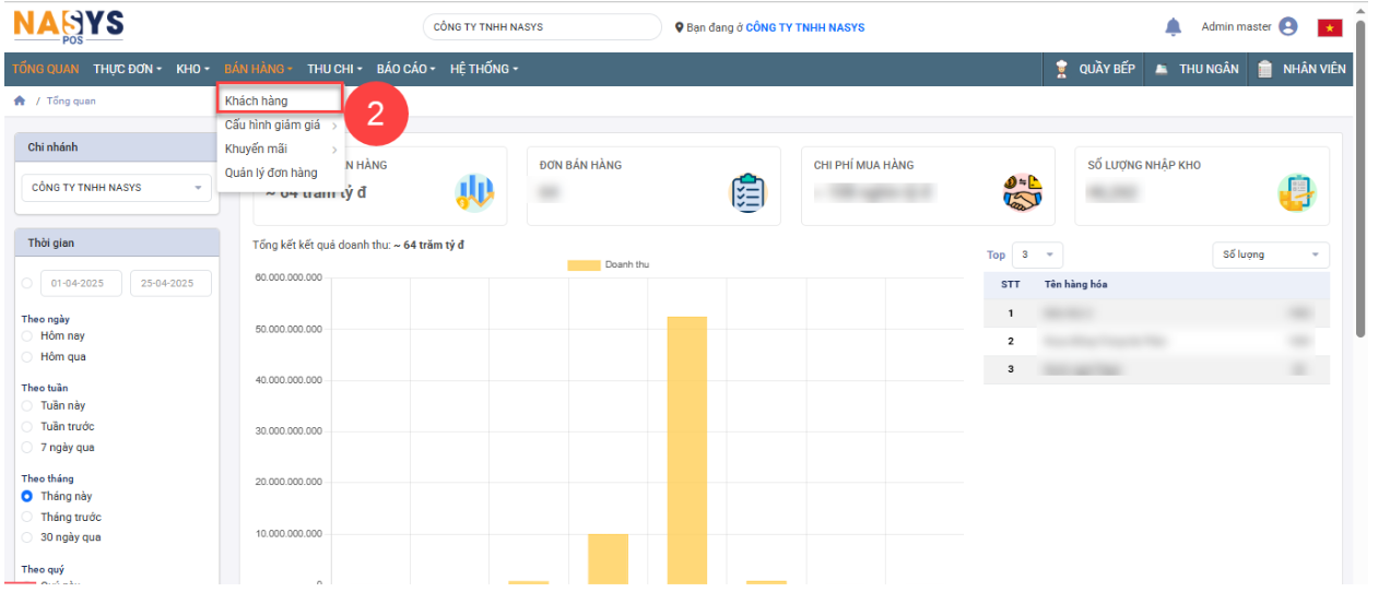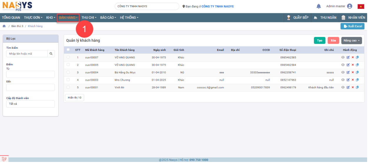 Bước 2: NSD click vào chức năng “Khách hàng” để bắt đầu thực hiện Tạo khách hàng vào hệ thống