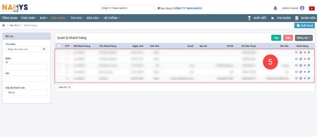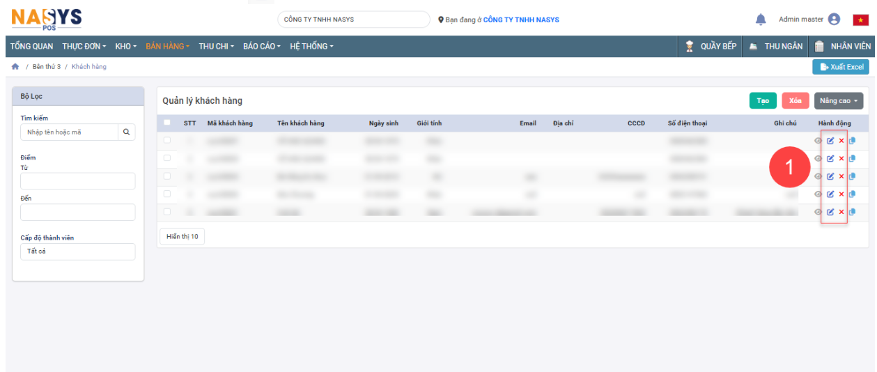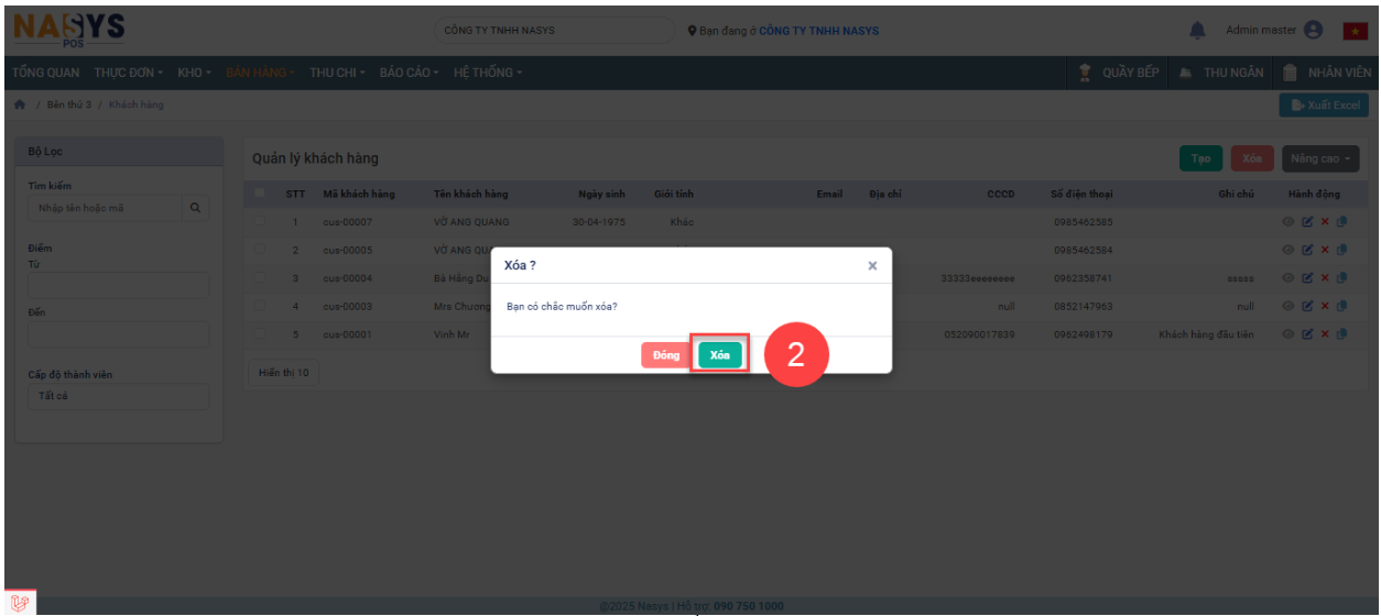 Bước 2: NSD chọn “Xóa” để thực hiện xóa khách hàng khỏi danh sách