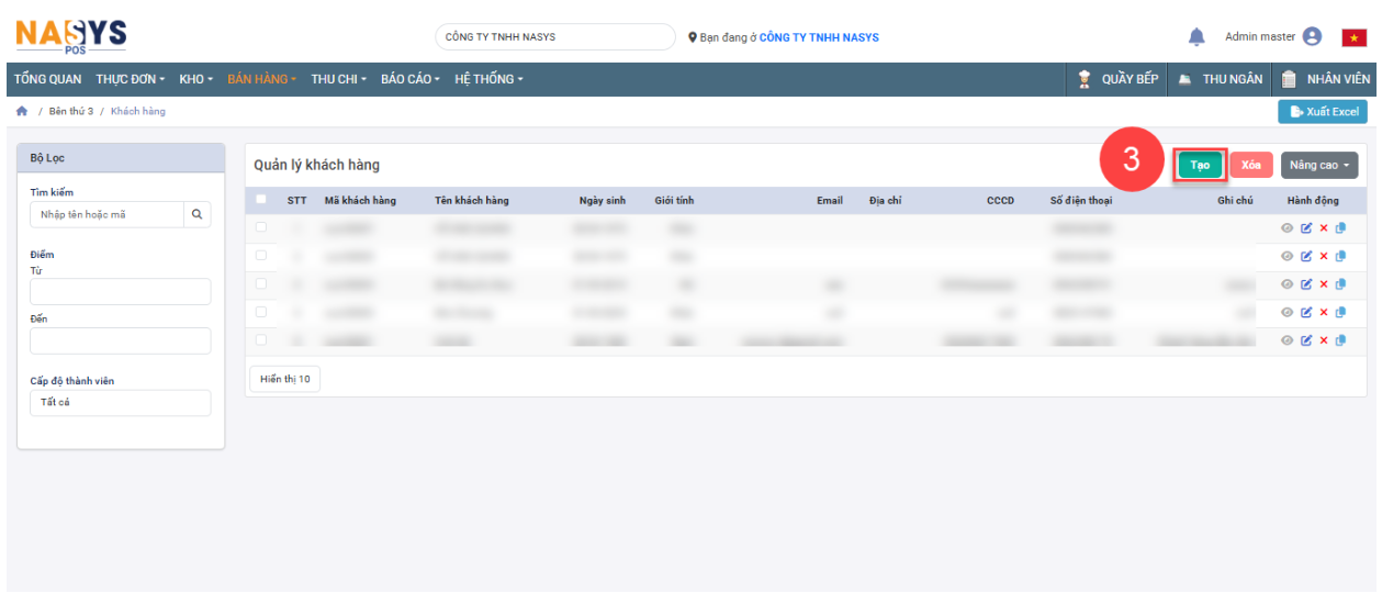 Bước 3: NSD click vào chức năng “Tạo” để bắt đầu Tạo khách hàng