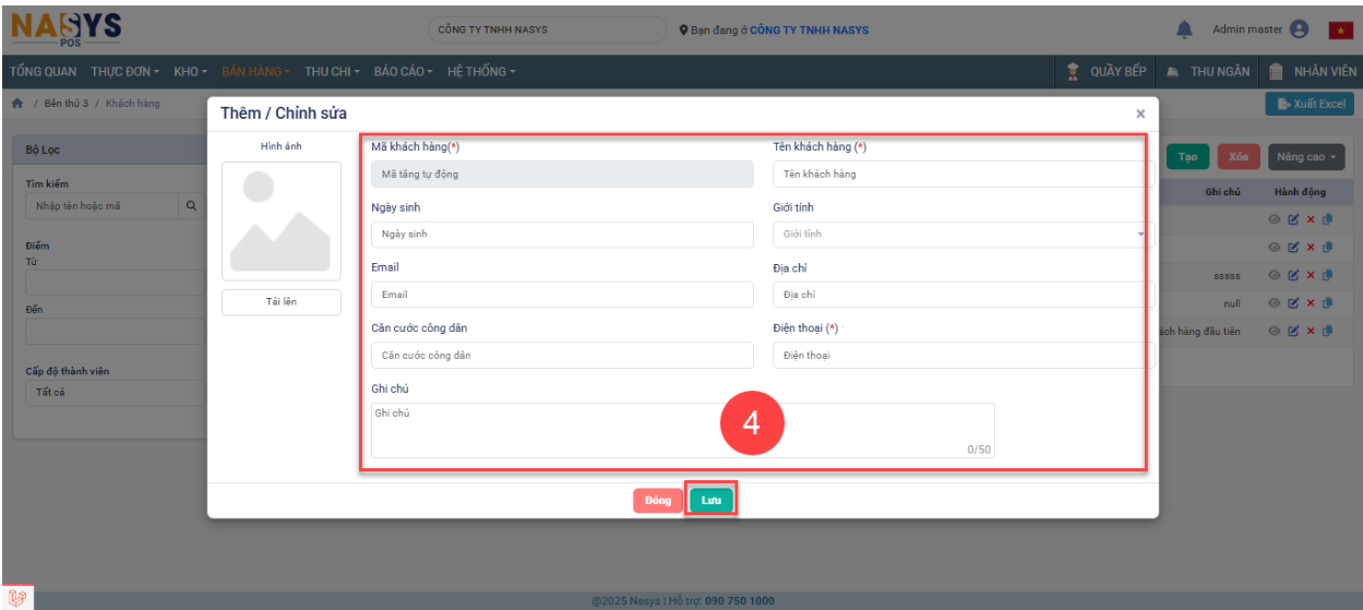 - Chọn “Lưu” để hoàn tất tạo khách hàng