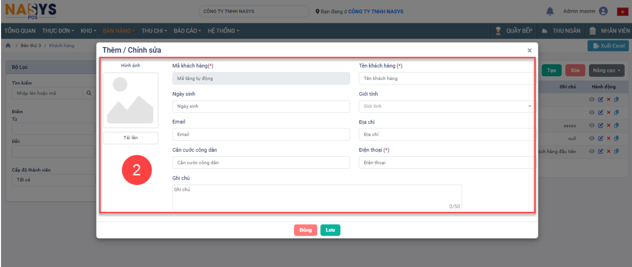 Bước 4: Tại popop “Tạo” → NSD thực hiện nhập thông tin của khách hàng