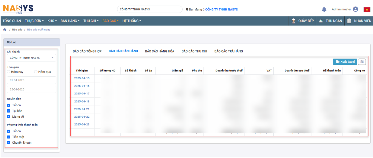 Hình minh họa xem báo cáo bán hàng cuối ngày