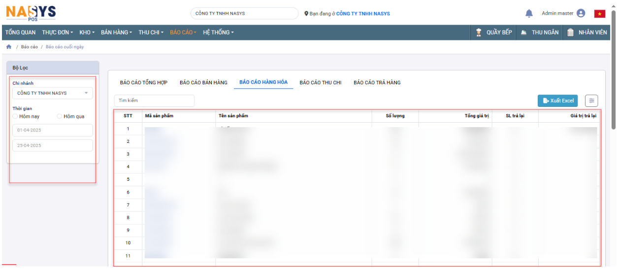 Hình minh họa xem báo cáo hàng hóa cuối ngày