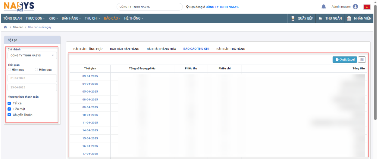 Hình minh họa xem báo cáo thu chi cuối ngày