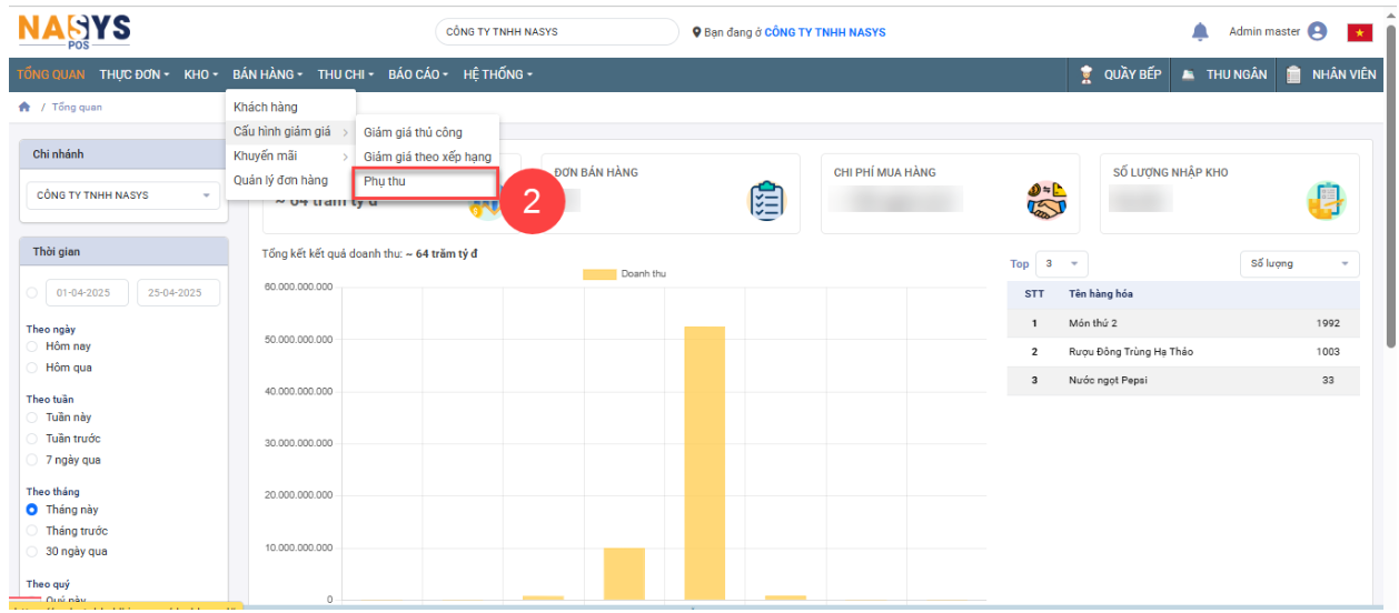 Chức năng thiết lập phụ thu, mục đích để áp dụng các chính sách phụ thu bổ sung khi thanh toán