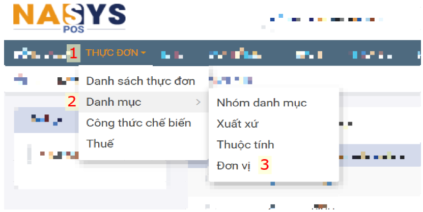 Bước 1: NSD truy cập “Thực đơn”, chọn “Danh mục”, chọn “Đơn vị”