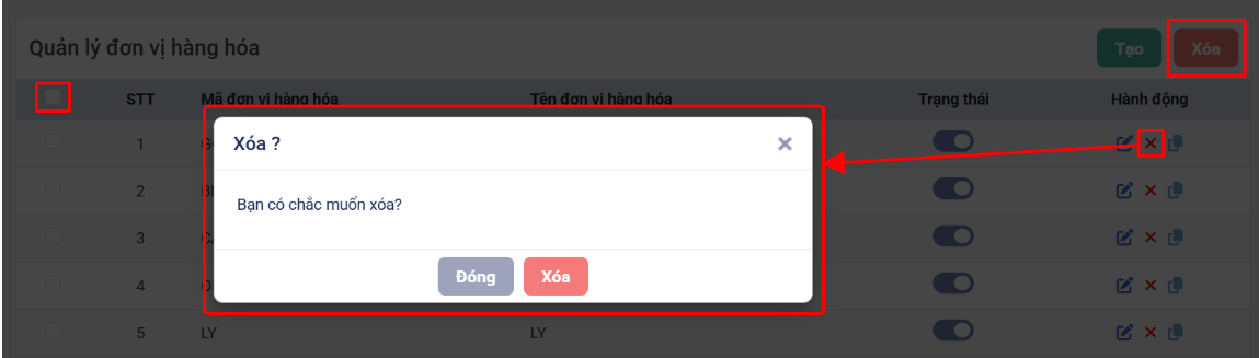 - Xóa: Có 2 lựa chọn thao tác thực hiện, xác nhận xóa bằng cách chọn “Xóa”