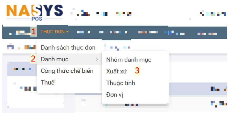 Bước 1: NSD truy cập “Thực đơn”, chọn “Danh mục”, chọn “Xuất xứ”