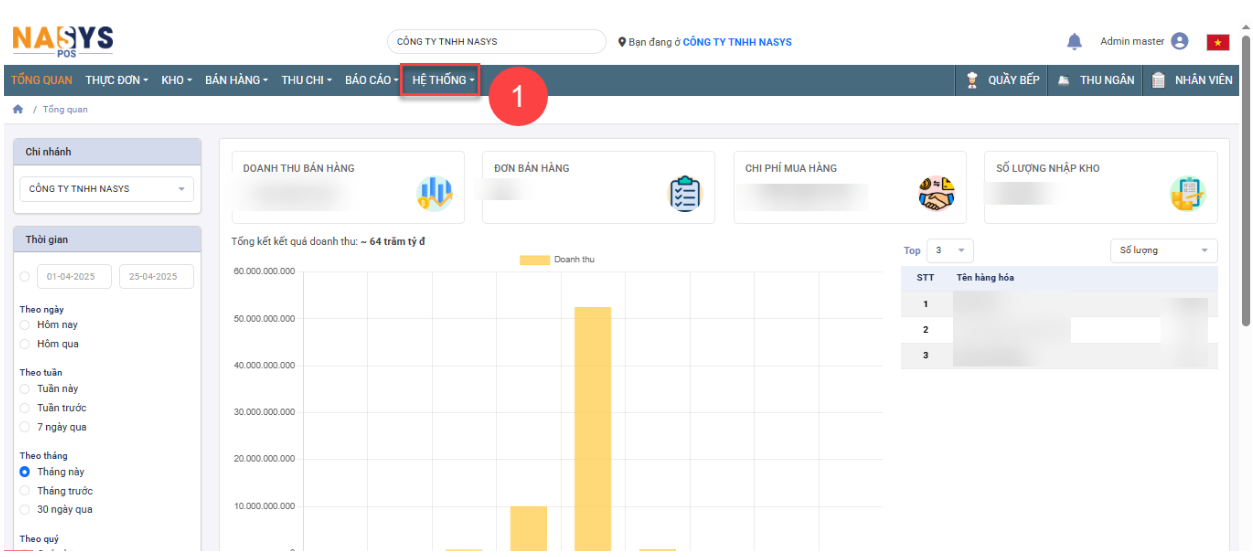 Bước 1: NSD chọn vào mục “Hệ thống”