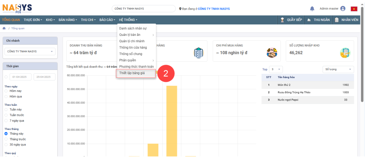 Bước 2: NSD chọn vào chức năng “Thiết lập bảng giá”