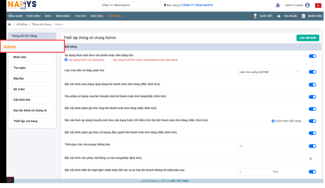 Mục cấu hình giúp giúp bạn cài đặt các tùy chỉnh các thông số cho hệ thống cửa hàng: