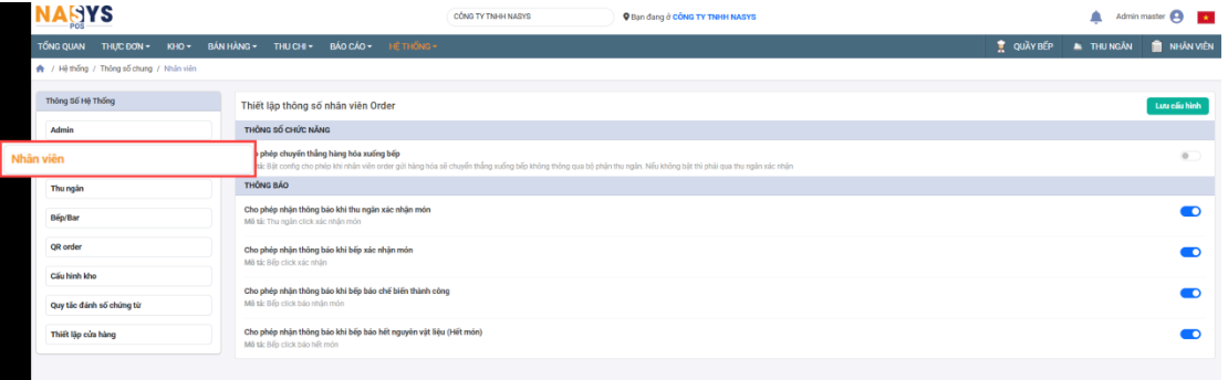 Thiết lập thông số cho (NHÂN VIÊN) order.