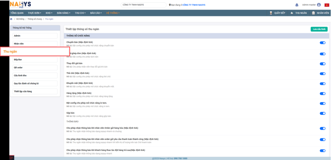 Thiết lập thông số cho (THU NGÂN) Cashier.