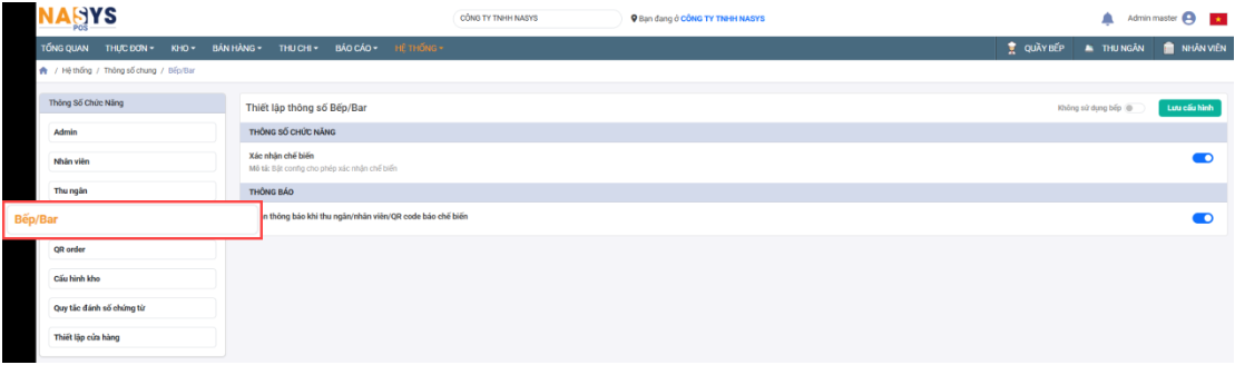 Thiết lập thông số cho (BAR/BẾP) Nhân viên chế biến.