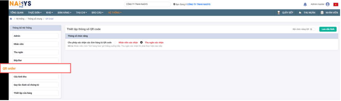 Thiết lập thông số cho (Order QR) Khách hàng Order.