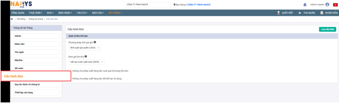 Để sử dụng tính năng Cấu hình chung, bạn cần đăng nhập vào hệ thống Nasys và thao tác như sau:
