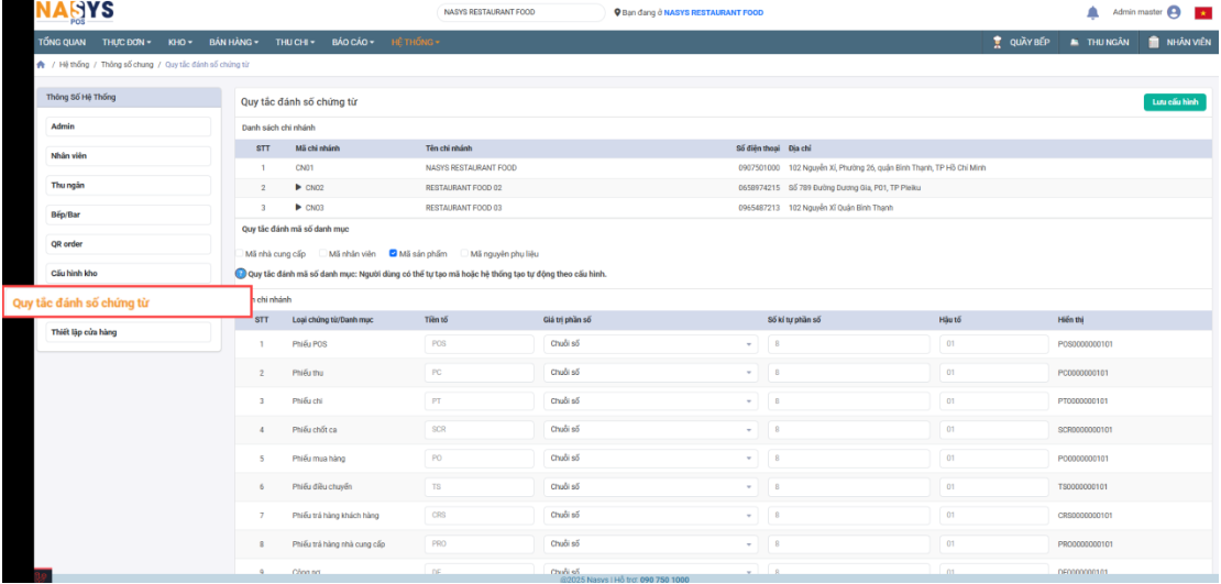 Thiết lập những thông tin cơ bản quy tắc đánh số chứng từ hệ thống.