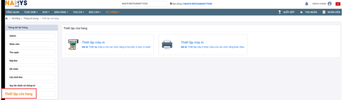 Thiết lập những thông tin cơ bản mẫu in và các máy in của hệ thống.