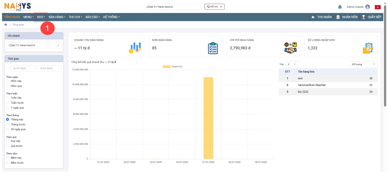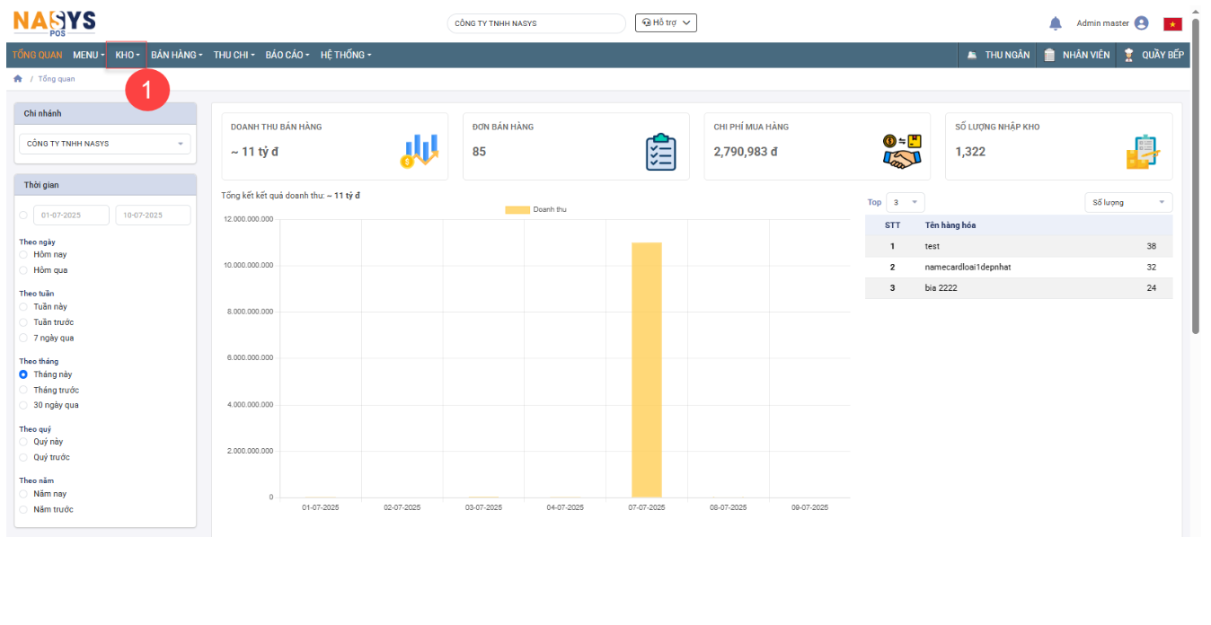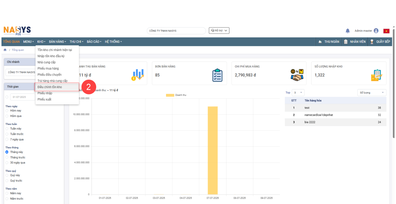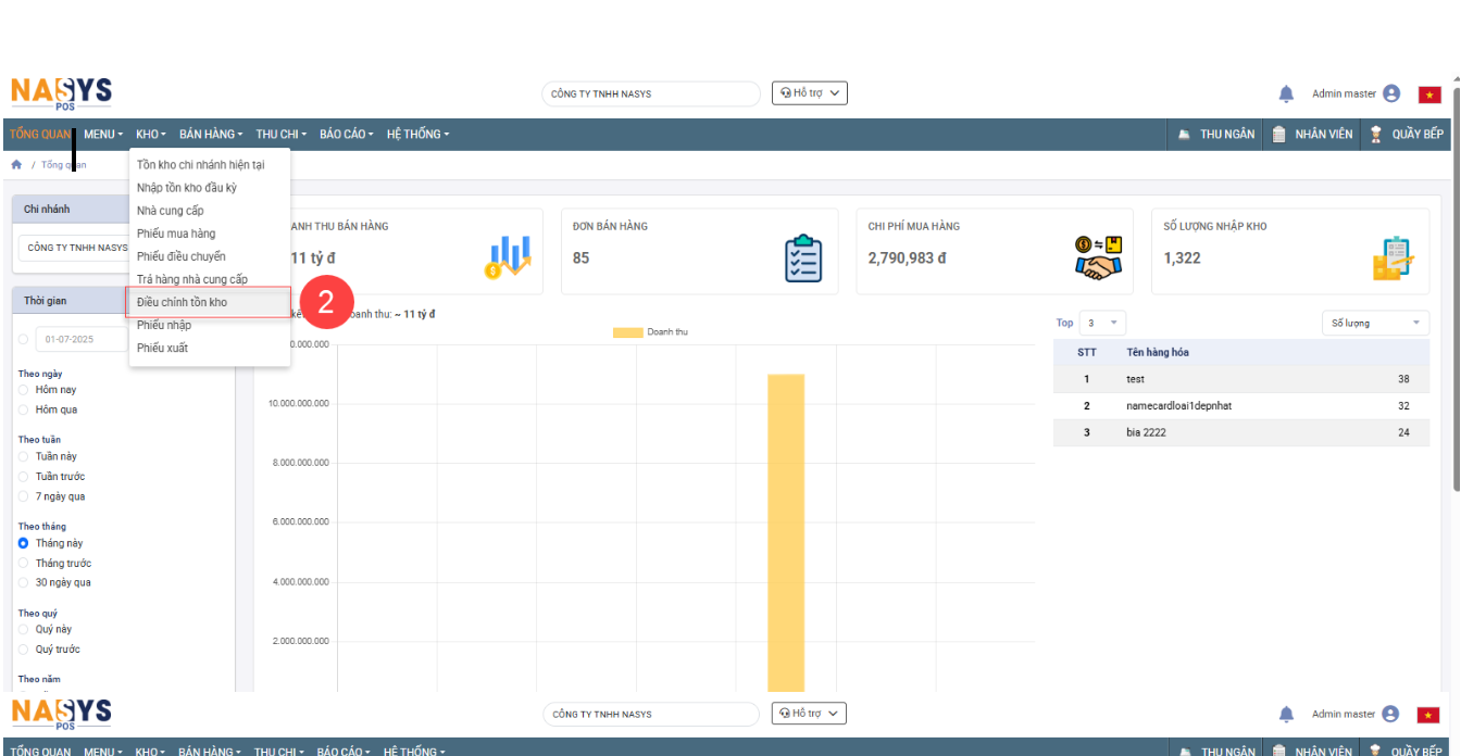 Bước 2: Chọn vào chức năng Điều chỉnh tồn kho