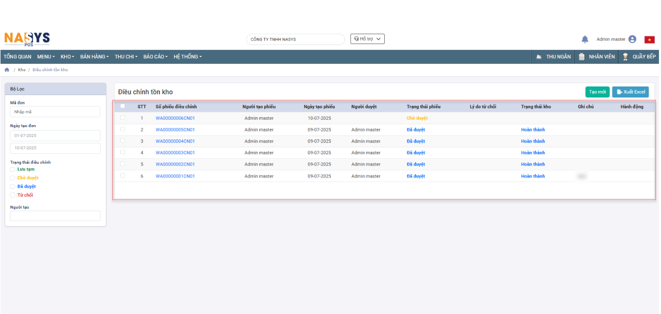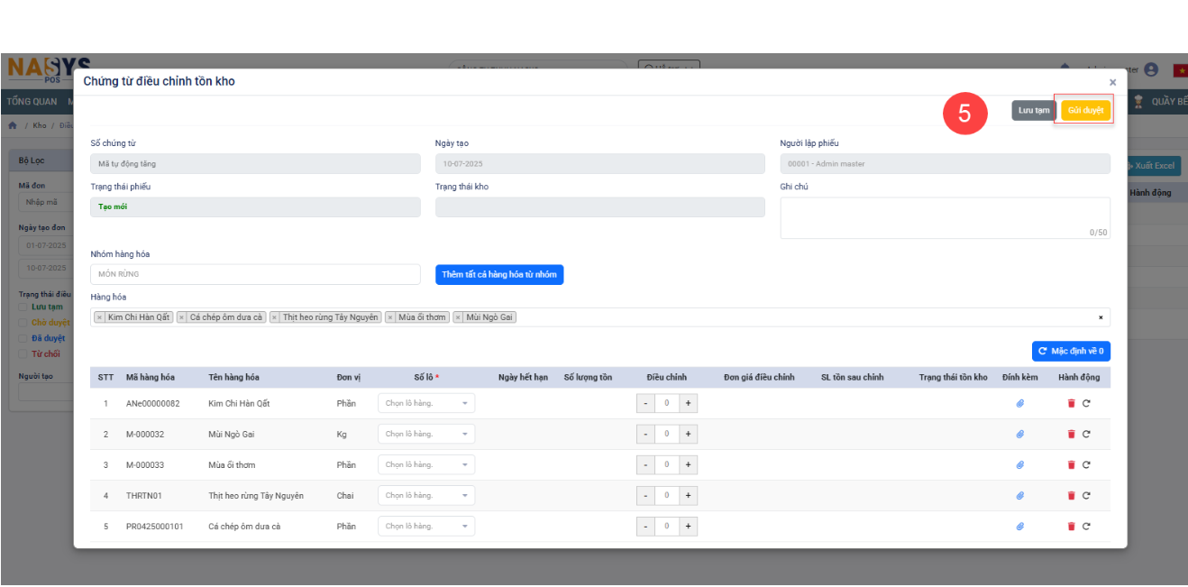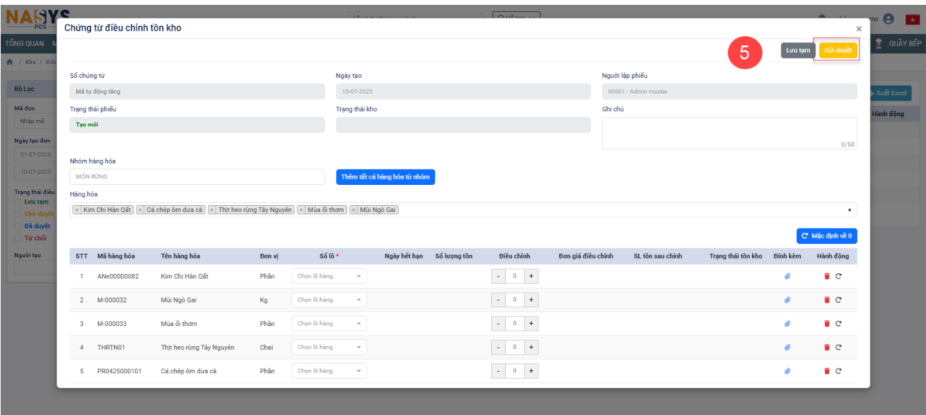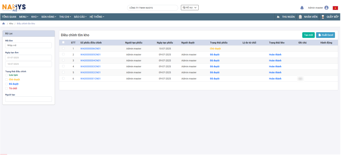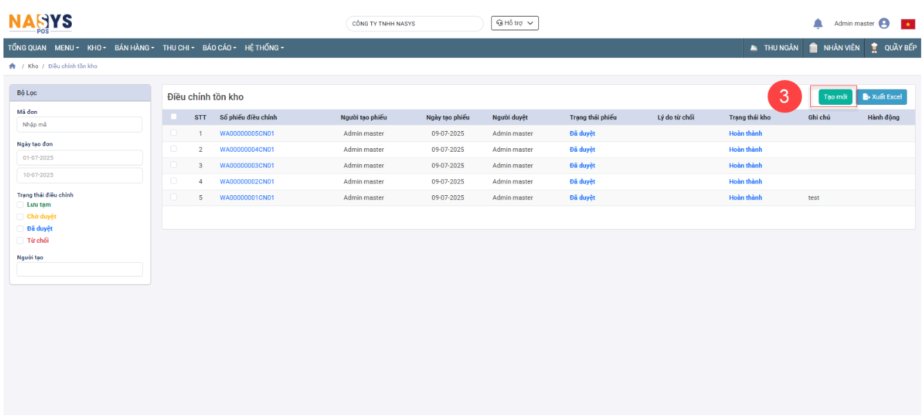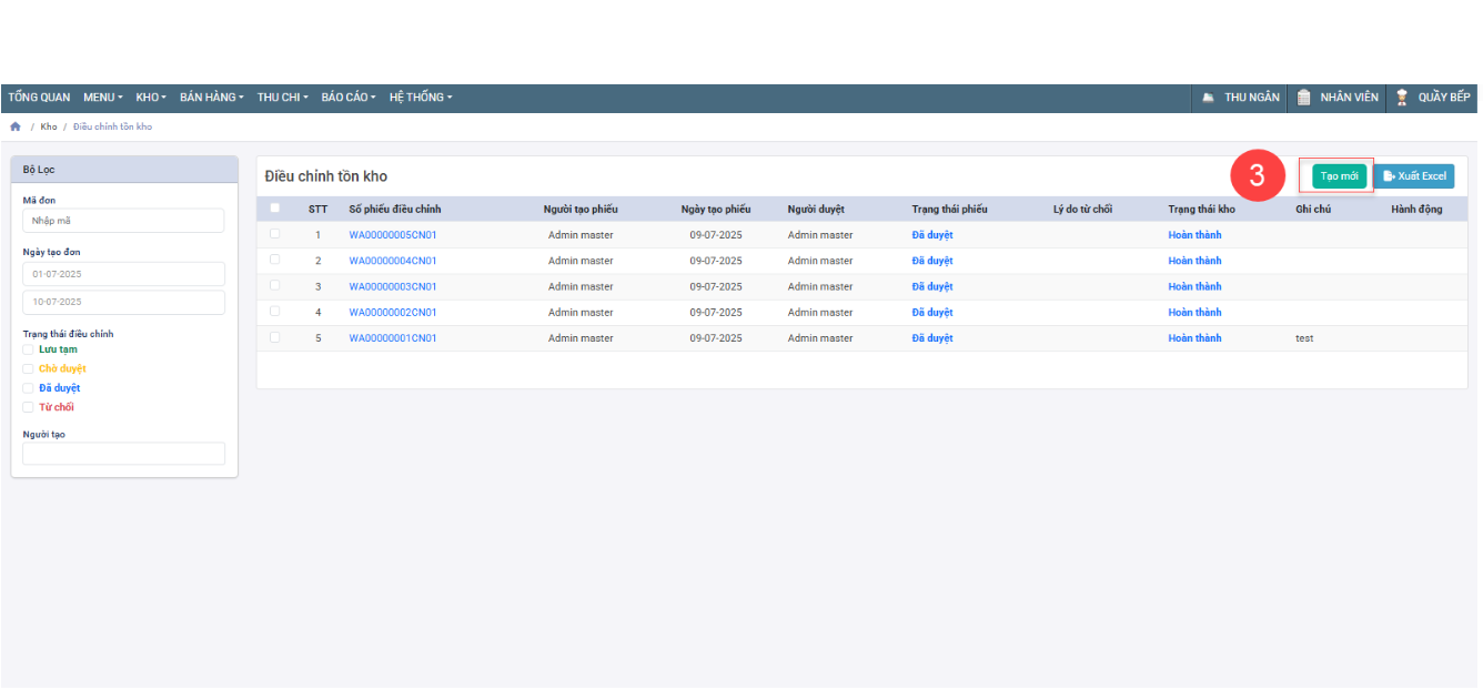 Chỉ người dùng có quyền quản lý kho (quản lý, admin, thủ kho…) mới được thực hiện điều chỉnh.