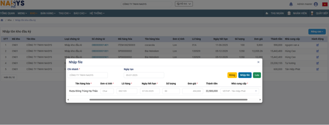 - Số liệu nhập tồn đầu kỳ sẽ được hệ thống ghi nhận làm căn cứ cho các báo cáo xuất/nhập/tồn kho sau này.