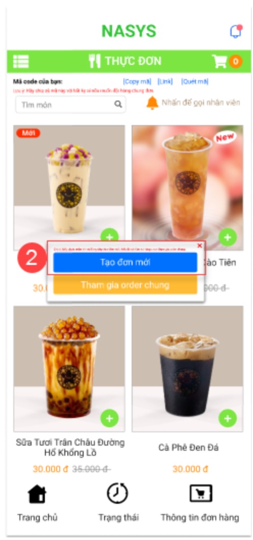 Hình minh họa hiện lên popup chọn tạo đơn mới