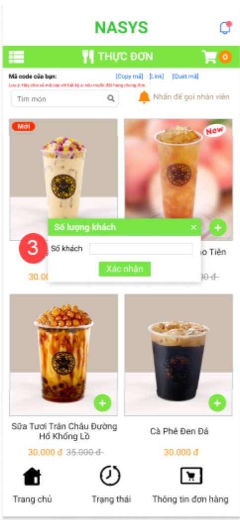 Bước 1: NSD sử dụng điện thoại cá nhân và thực hiện quét mã được dán trên bàn đang ngồi