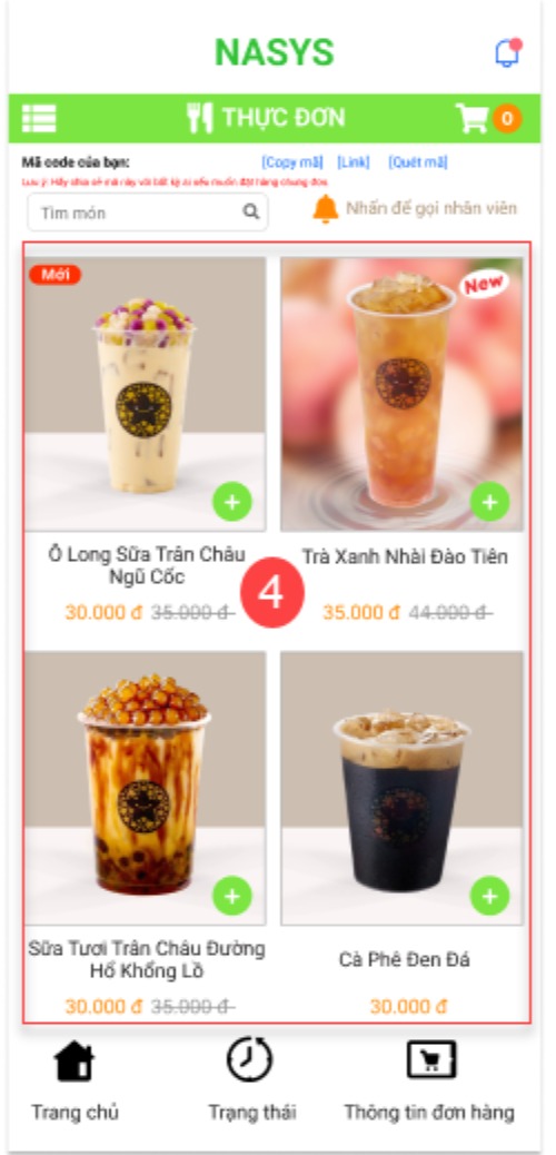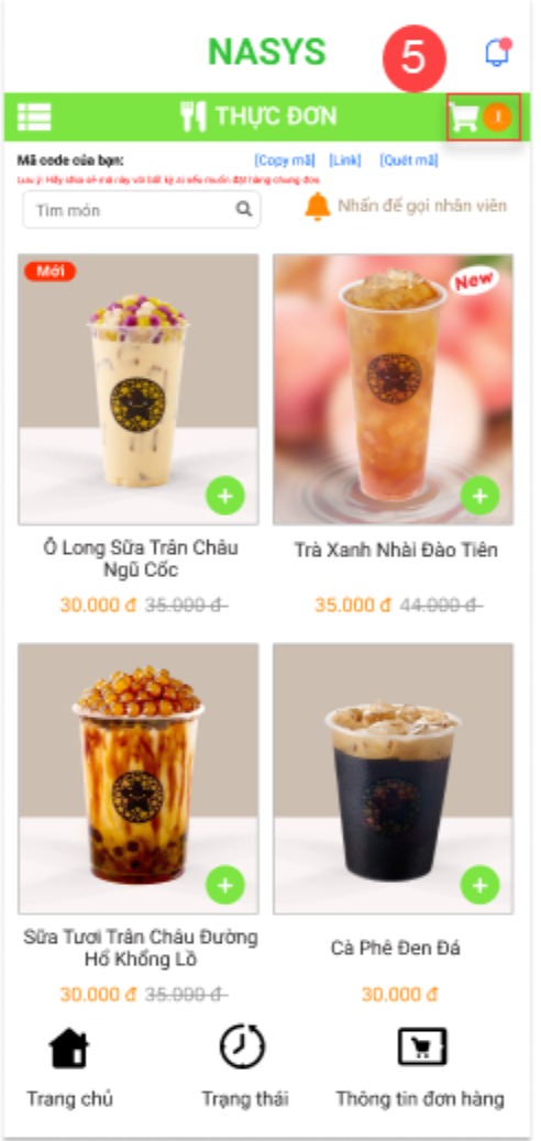 Bước 4: NSD thực hiện chọn món và thêm vào giỏ hàng