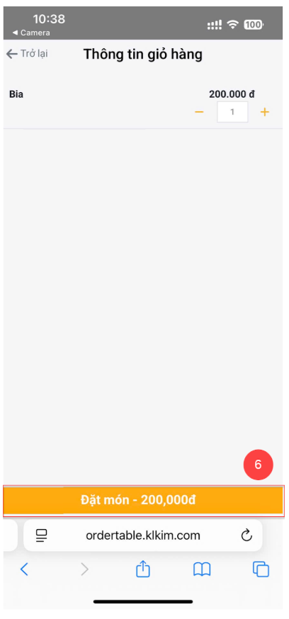 Bước 6: NSD Bấm chọn đặt món để gửi món đến bộ phận tiếp nhận