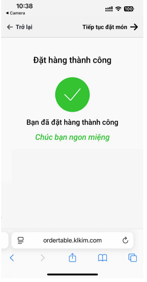 Bước 7: Hệ thống hiển thị thông báo đặt hàng thành công
