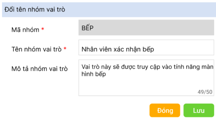 Khi thực hiện thao tác đổi tên nhóm thì sẽ cho phép đổi “tên nhóm” và đổi nội dung “ Mô tả” chi tiết.