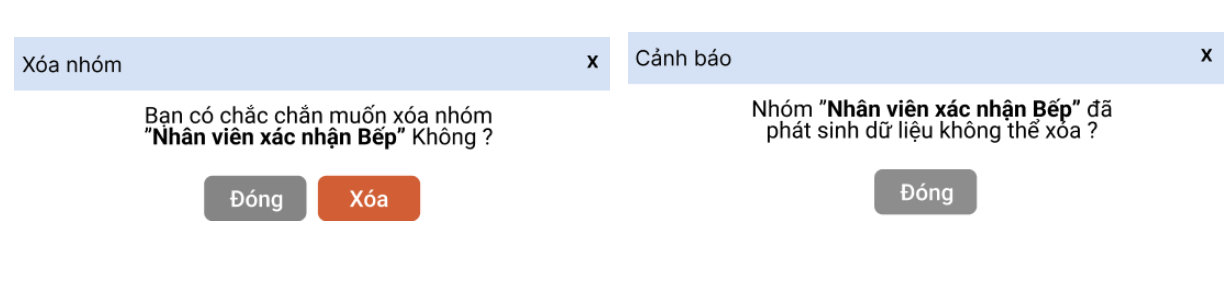 - Không cho phép xóa nhóm nếu đang được gán cho người dùng nào đó.