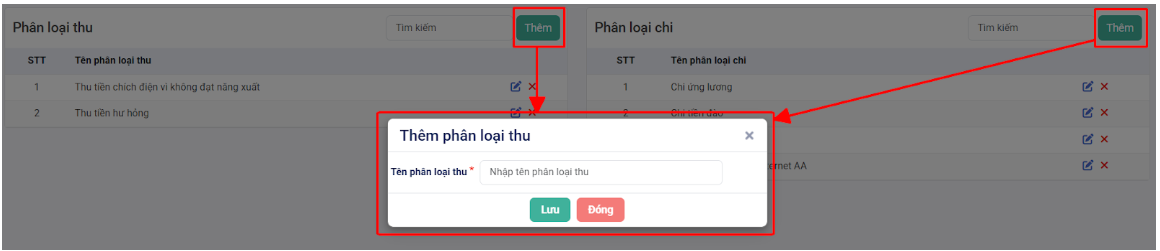 Để thực hiện quản lý Loại thu chi, truy cập tại đây