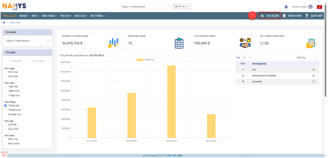 Bước 1: NSD chọn vào mục “Thu ngân”