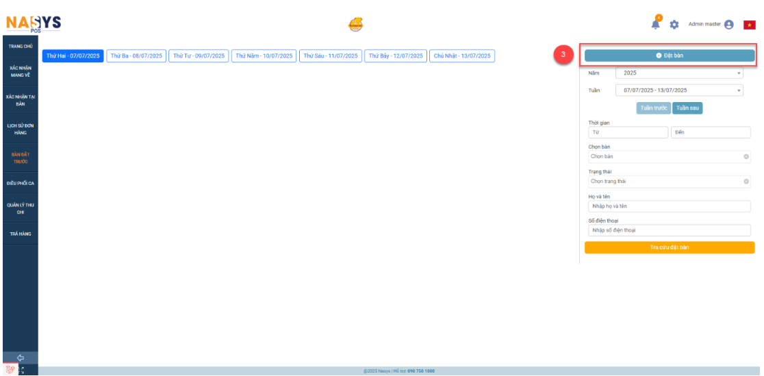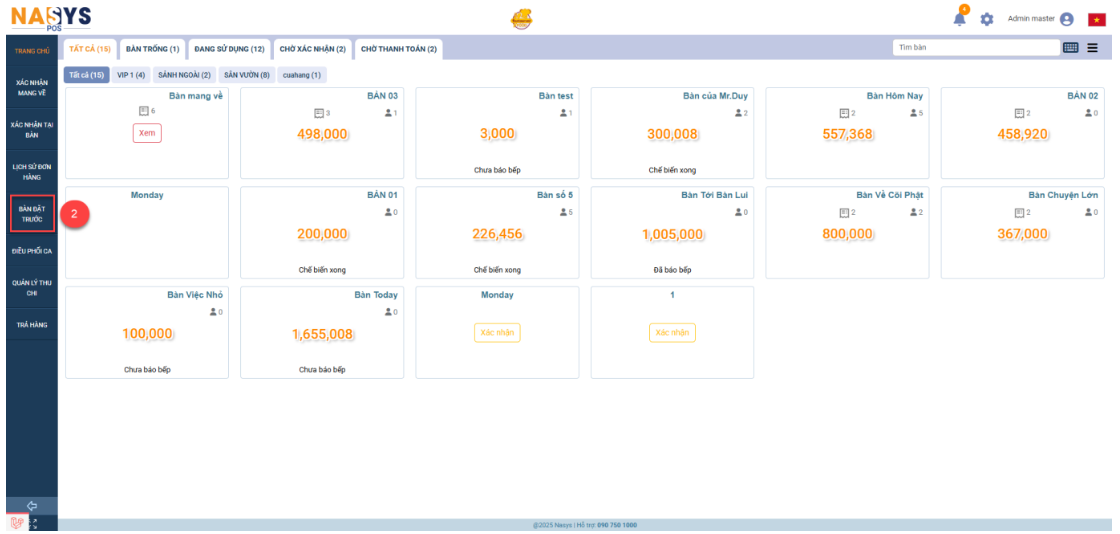 Chức năng đặt bàn trước dùng để thực hiện đặt bàn trước cho khách khi có nhu cầu