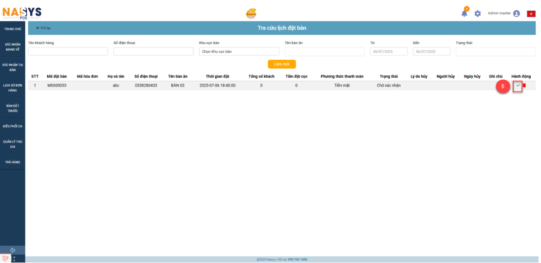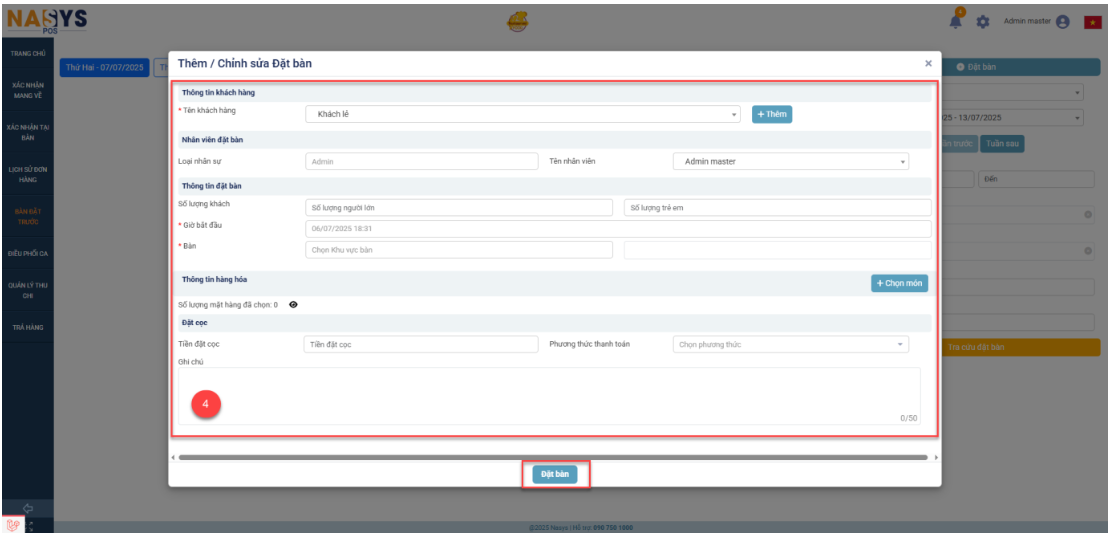 Bước 4: Nhập thông tin đặt bàn và nhấn lưu để hoàn tất đặt bàn