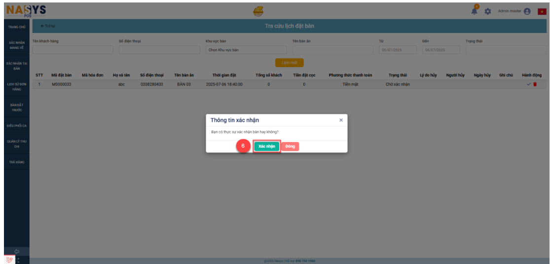 Bước 6: Xác nhận hoàn tất đặt bàn