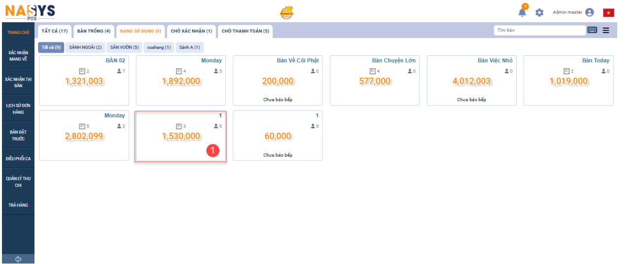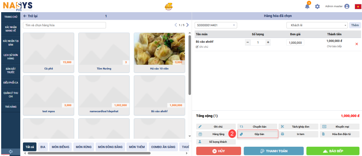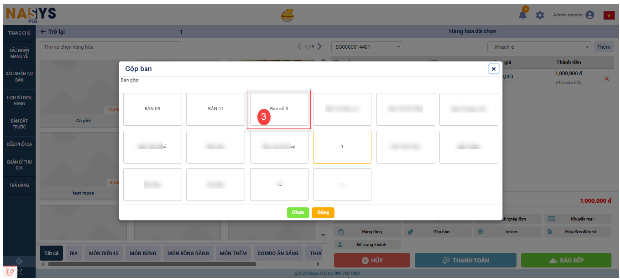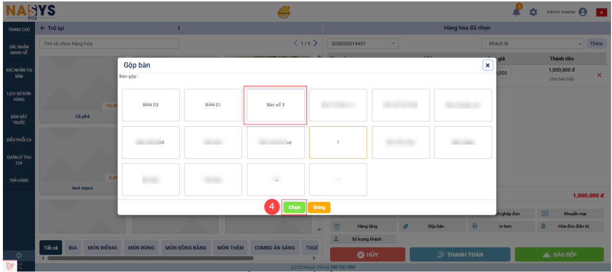 Bước 1: NSD sử dụng chọn vào bàn cần thực hiện gộp