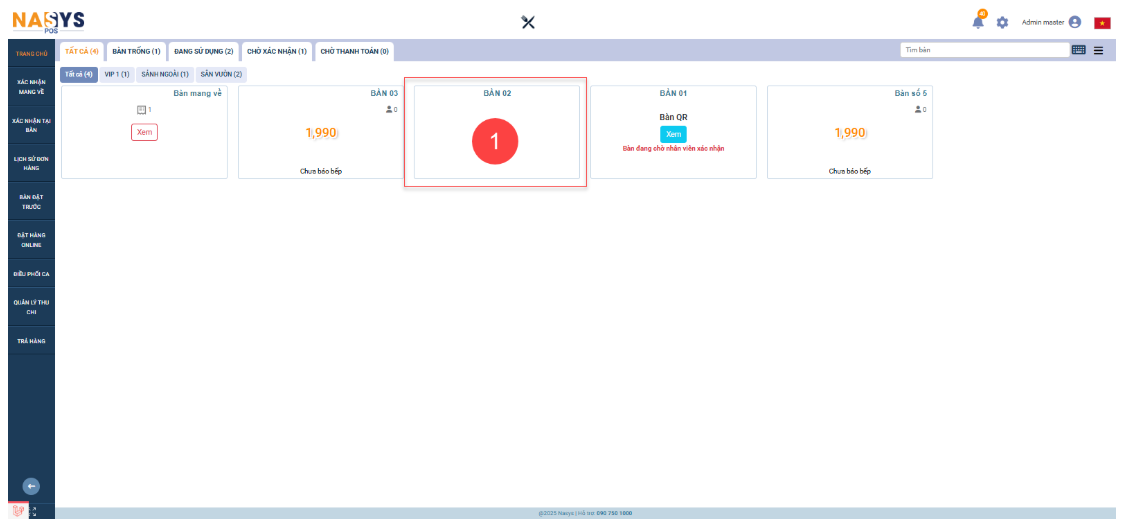 Bước 1: Chọn bàn bất kì bàn để tiến hành tạo đơn cho khách