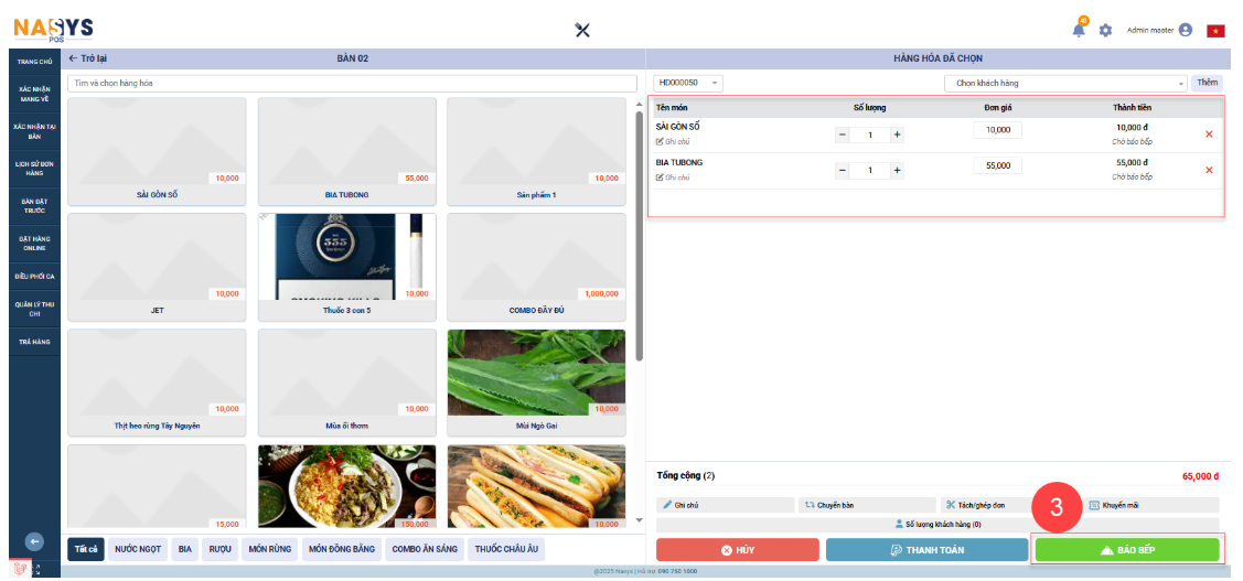 Bước 3: Gửi bếp chế biến sau khi đã chọn thực đơn đưa vào giỏ hàng
