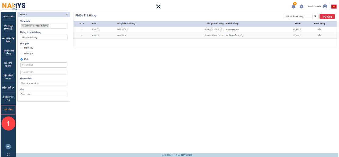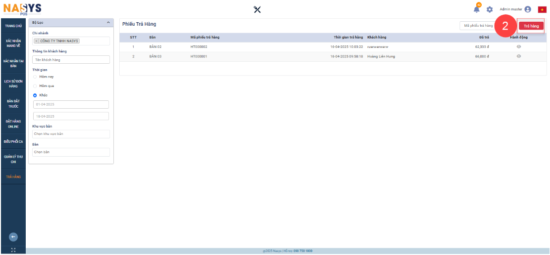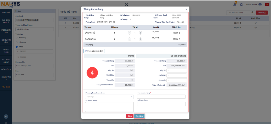 Bước 4: Nhập vào thông tin đơn trả hàng và bấm trả hàng