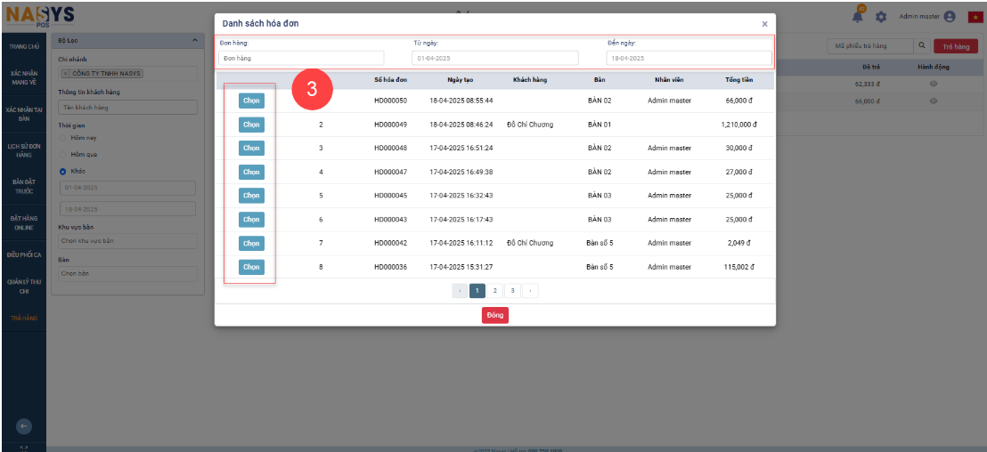 Bước 3: Tìm kiếm và chọn đơn hàng cần thực hiện trả lại
