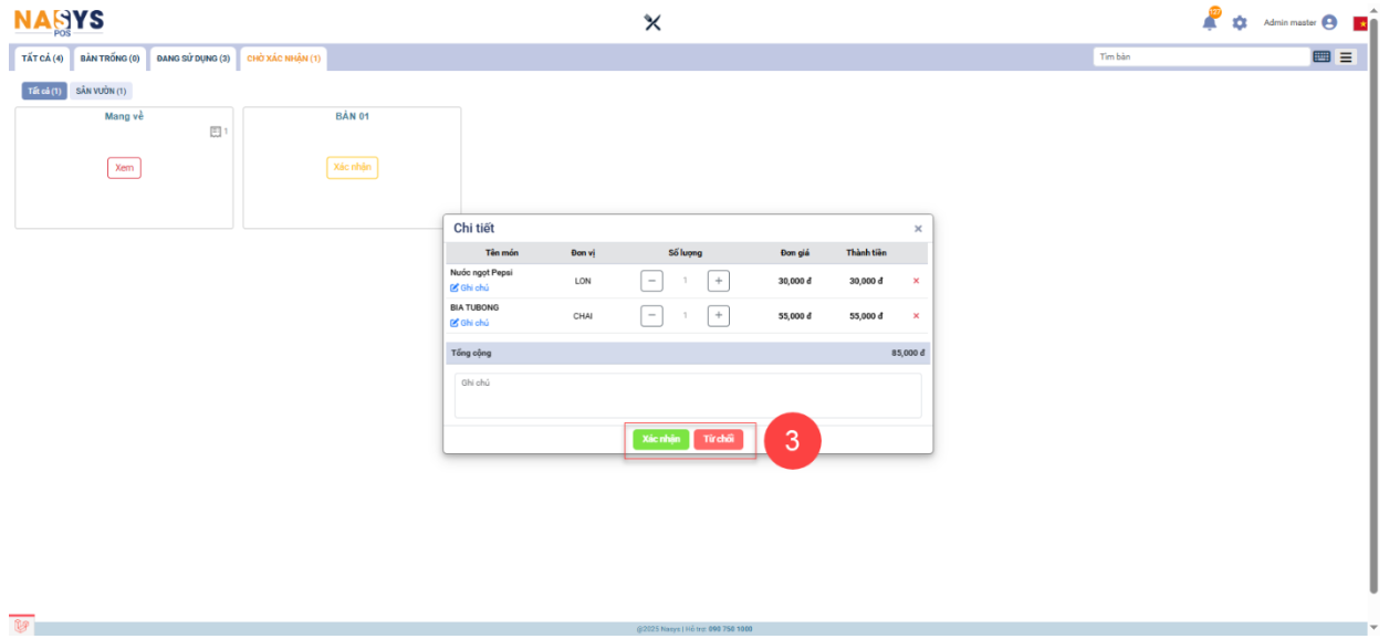 Bước 3: Click vào button “Xác nhận” hoặc “Từ chối” đơn hàng
